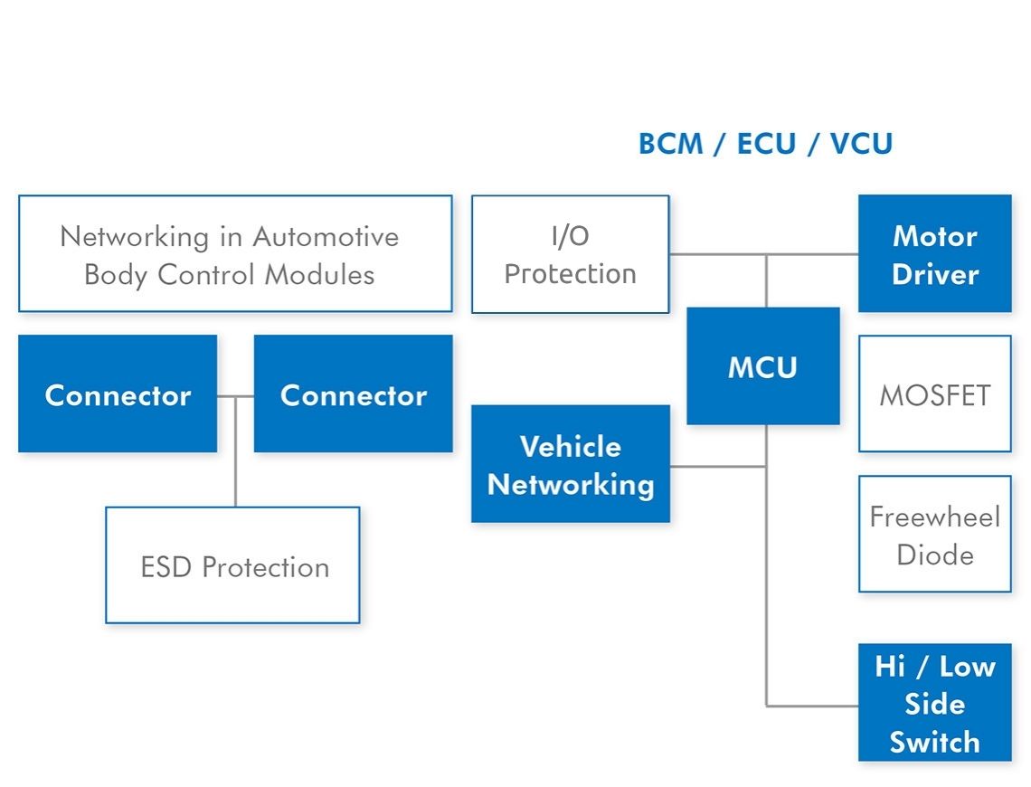 汽车内装配备和舒适应用不断的在升级,从而提高驾驶员和乘客的舒适度和安全。影音视觉系统包括导航、抬头显示器、环景系统、倒车显影等主要作用是提高驾驶员对周围车辆和环境的掌握,提升驾驶安全;座椅记忆、自动温度控制系统(HVAC)降低驾驶员的驾驶疲劳度;车载资讯娱乐系统逐渐于物连网连结,增加了乘客的乘车体验。强茂针对汽车车身应用和车载资讯娱乐系统亦提供一系列解决方案,不论是用于LIN bus和CAN bus上,保护资讯传输的ESD,或是电源电路的H Type Schottky和MOSFET元件。
