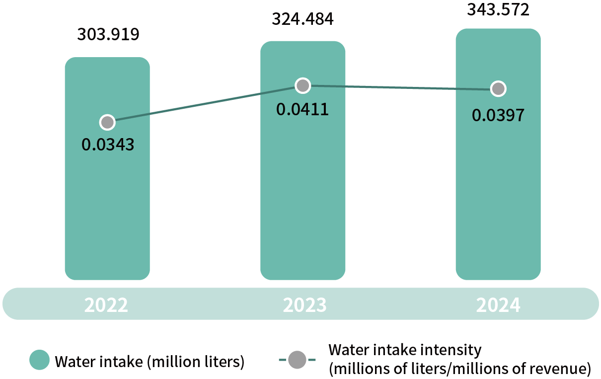 The main water use at PANJIT is tap water. Water intake is compliant with local regulations and does not cause major environmental impact. The water resource stress risk where the plant is located is assessed in accordance with the World Resources Institute’s (WRI) Aqueduct Water Risk Atlas, and the results show that PANJIT is in “low-risk” areas. The company will also continue to pay attention to the water resource risks for timely establishment of the corresponding strategies.